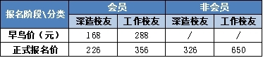注:“/”表示未对非会员校友开放“早鸟报名”权限
