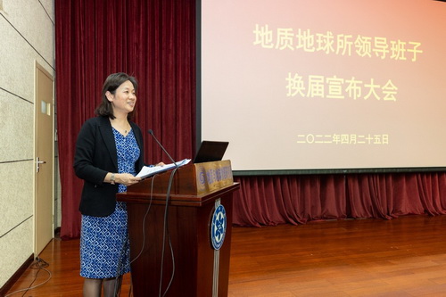 地质地球所召开领导班子换届宣布大会:孙晓明宣读任免决定。