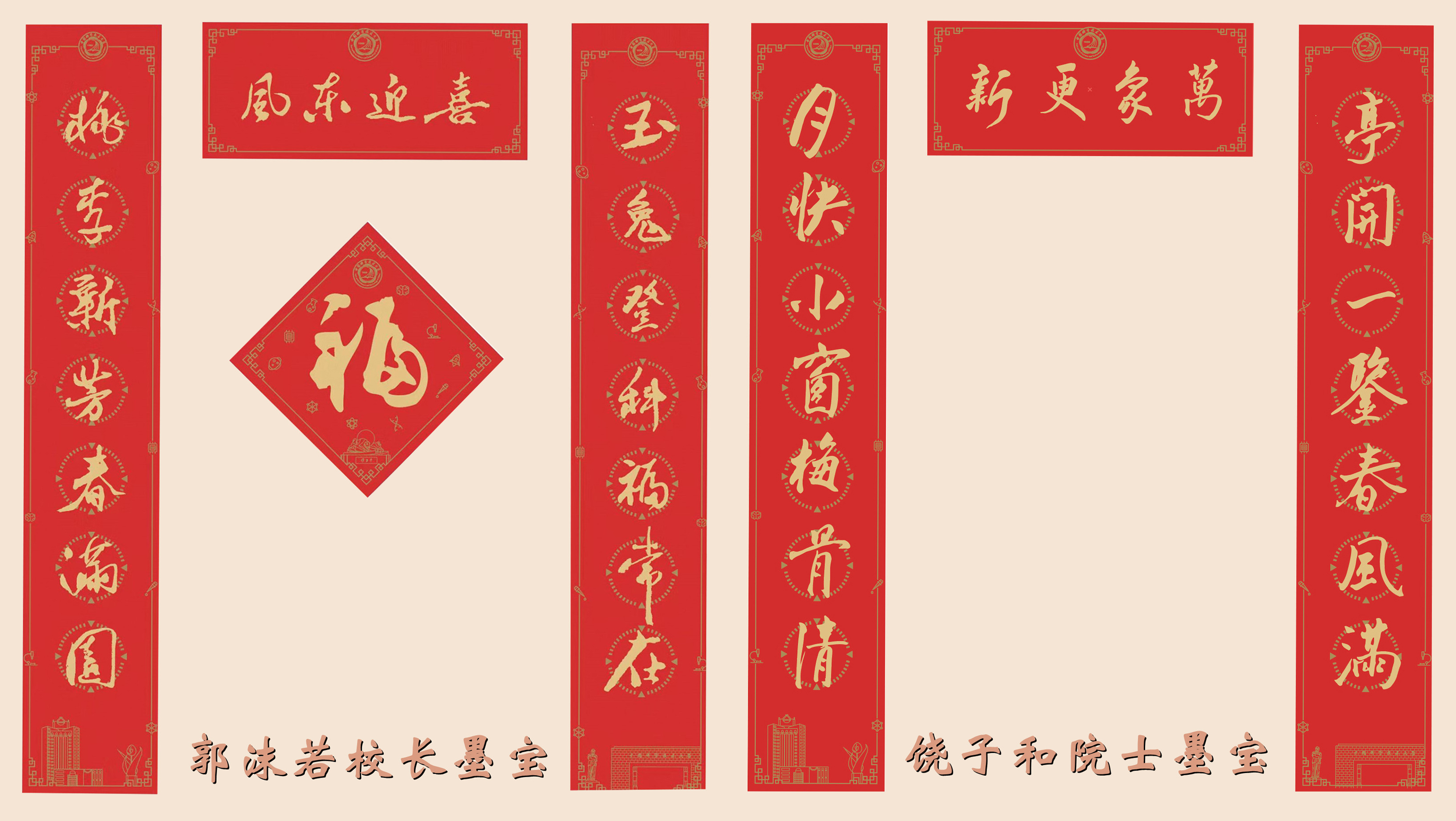 2023年兔年,中国科大北京校友会将隆重推出中国科学技术大学科学家院士春联礼盒套装。应北京校友会邀请,六位中国顶尖名校校长与一位“普通”院士特地已为科大校友师生书写春联、“福”,构成全球最高科学层次的春联礼盒(含春联两幅、福字三幅,發字一幅,窗花四幅,红包及祝福卡),为科大校友送福。