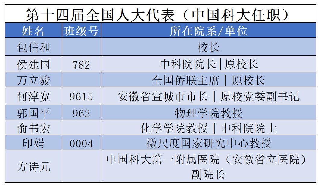 于中国科大任职/曾任职的人大代表
