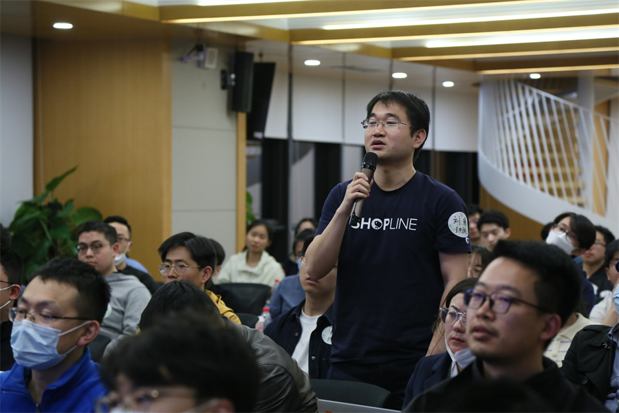 分享结束后,中科院微电子所朱慧珑(772)、国家知识产权局专利局专利审查协作北京中心刘松元(0923)、亚马逊科学家罗睿(0408)、中科院国家天文台张勇(9509)等多位校友向齐炜祯提问互动。
