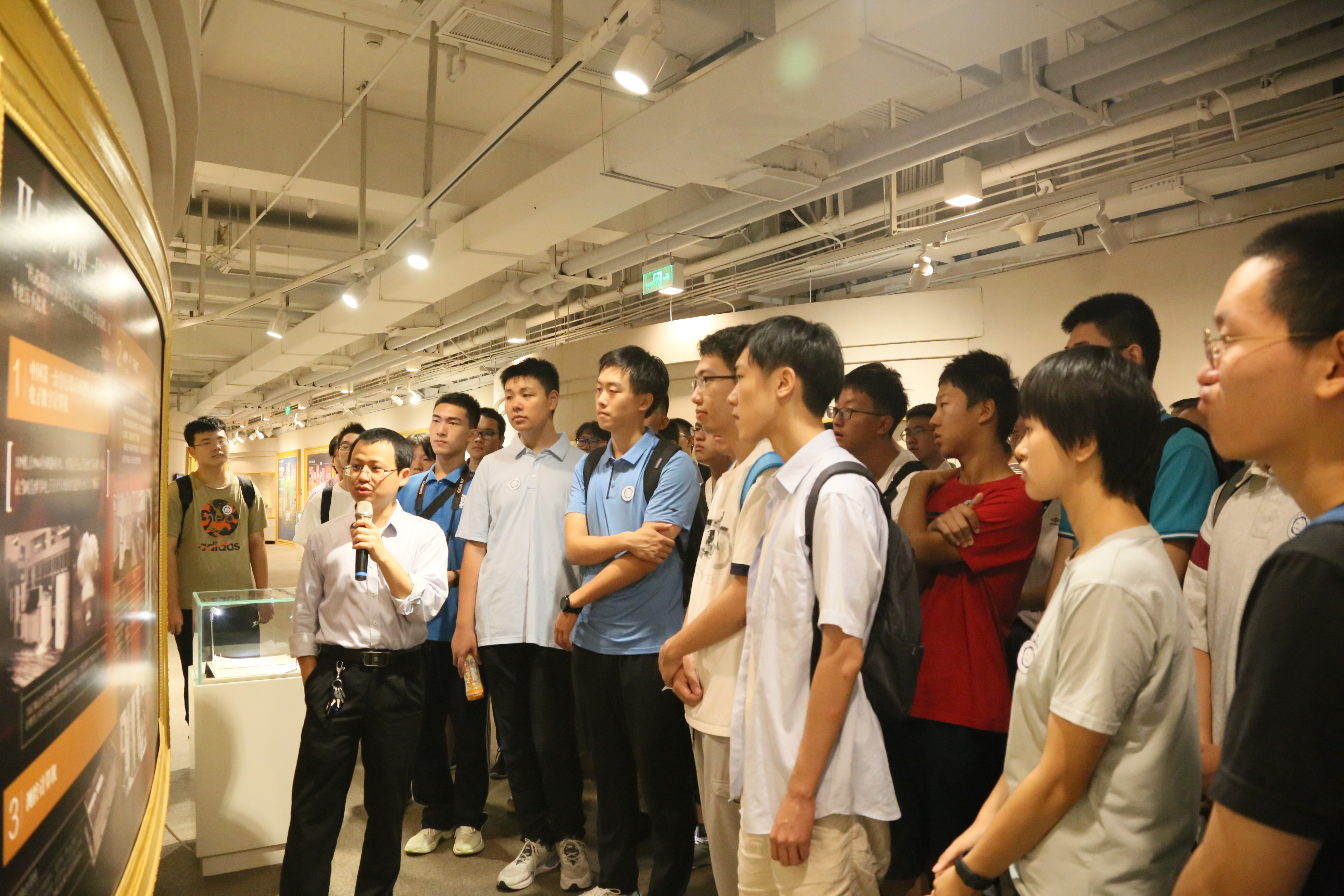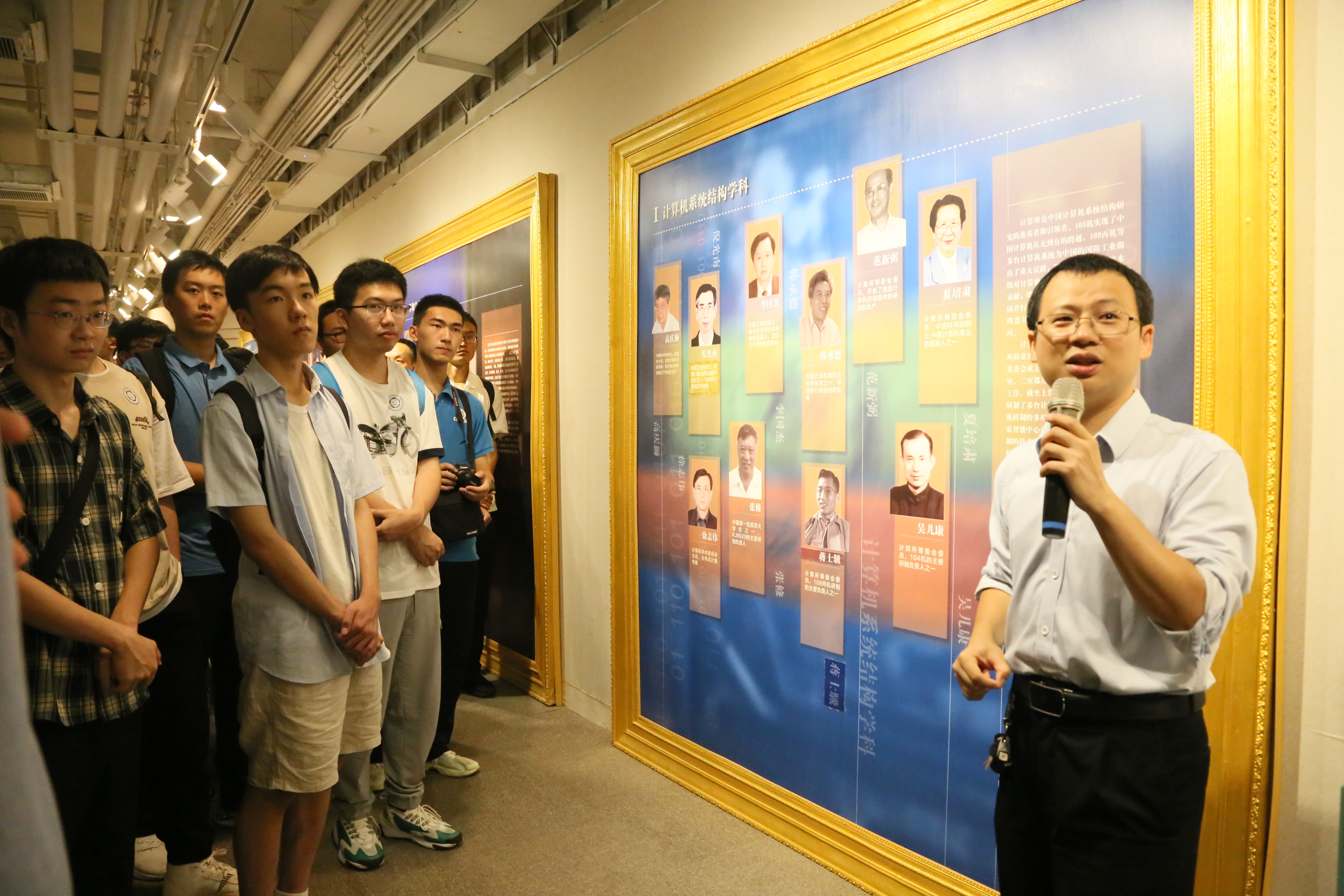 上午9:20,国家自然科学二等奖与中国青年五四奖章获得者陈云霁研究员,在计算所,与到访的新生与家长合影留念。随后,率领众人参观了计算所的历史与现代展厅。计算所是新中国计算机技术的发源地。在华罗庚与夏培肃先生的领导下,全国计算机人才按照“先集中后分散”的原则,培训学习之后散布到新中国各地。计算所展厅内,也凝聚着诸多中国科大人的光荣历史。陈云霁副所长表示:计算所是孵化了很多研究机构,包括“中国科大计算机学科就是计算所孵化的!” 陈云霁研究员介绍了计算所在科学研究与产业取得傲人成就,热烈欢迎新生们投身信息科学,未来加盟计算所。