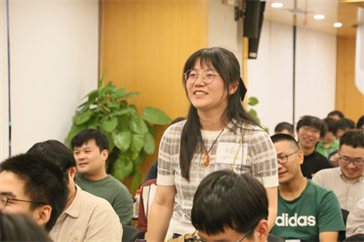 在互动问答环节,线上和线下的校友们踊跃参与。有校友好奇可灵AI模型下一步的优化方向;有校友请教他对AI领域的人才素质需求的看法。