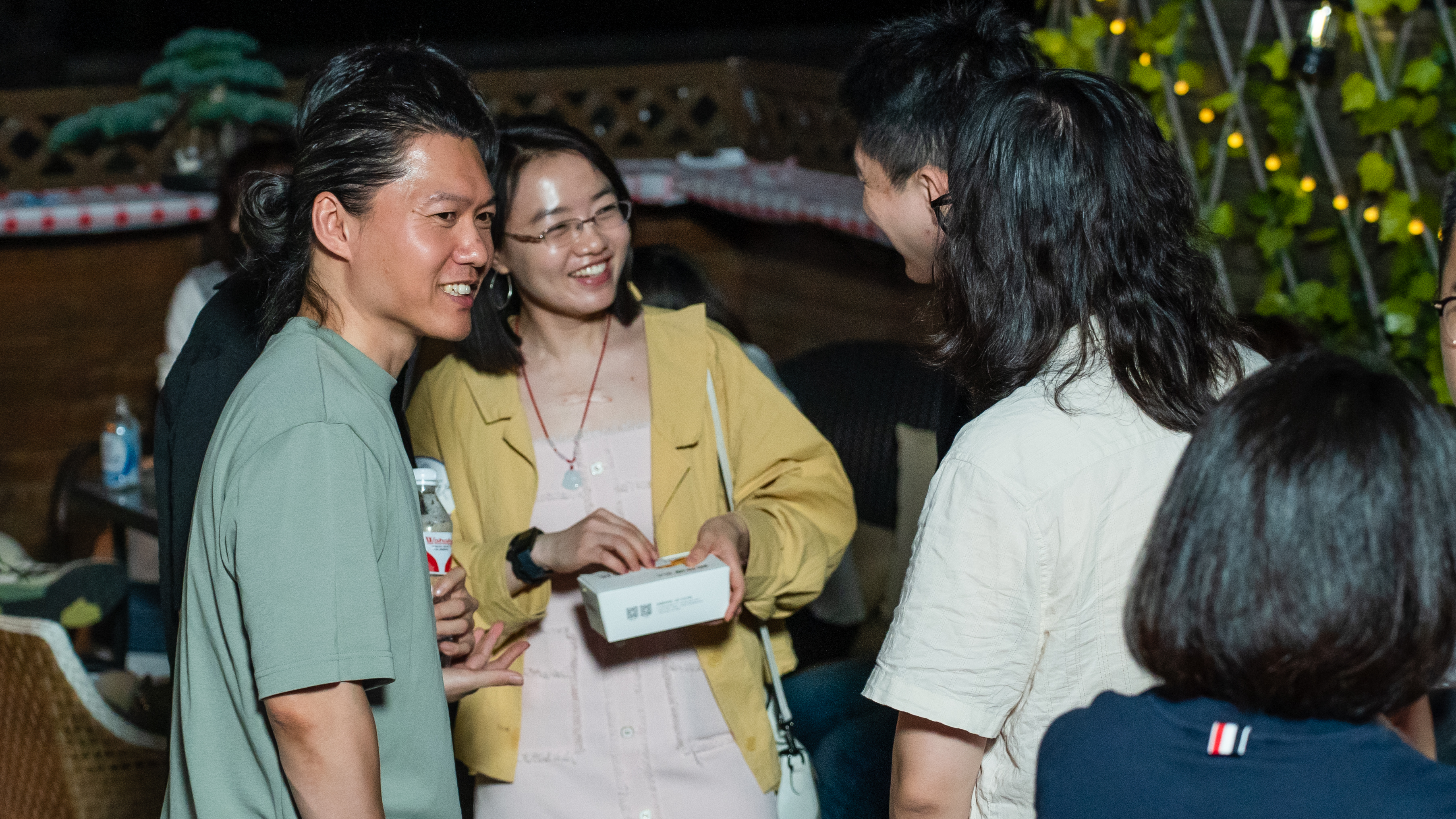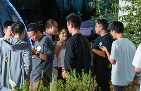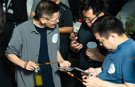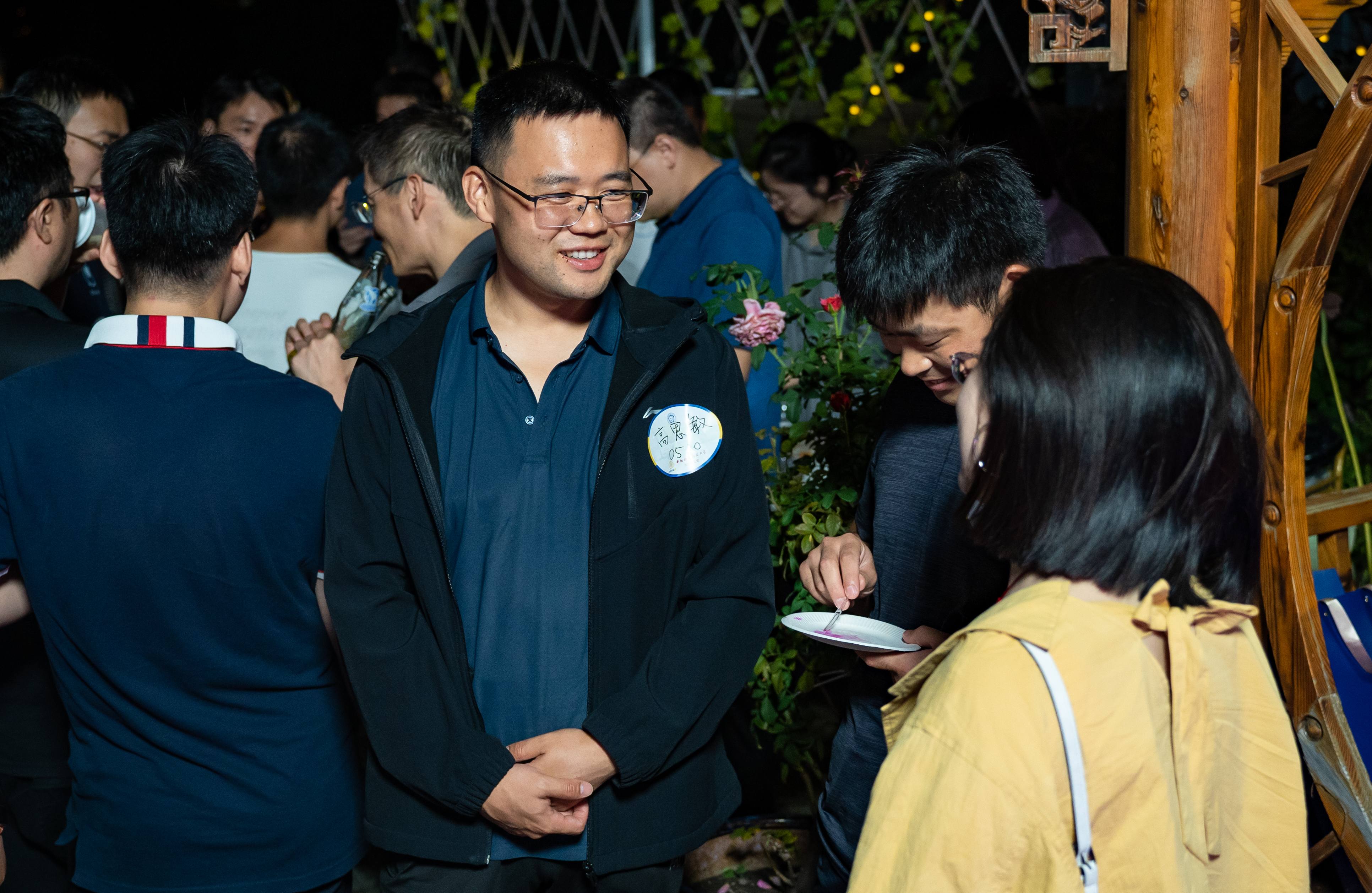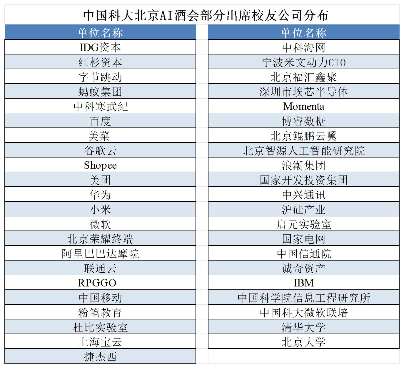 出席校友中,有不少AI大厂校友,包括字节跳动、蚂蚁集团、美团、寒武纪等,也有多家创业独角兽CEO出席。(详见文末“出席校友所在公司分布”)。中国科大北京校友会在9月4日曾为爱好学习的学霸们组织了强化学习沙龙。而AI酒会则主要为不爱学习或上班的码农定制,似乎更受卷腻了的学渣们欢迎。  北京校友会为校友们提供了不少酒水,眼尖的深圳女生谷小雨说隔壁就有羊肉串,弄点烤串吧!IDG资本合伙人李骁军(8810)慷慨掏出8888两银子,请校友们吃烤串。有了羊肉串,“酒肉穿肠过”的聚会终于齐活。