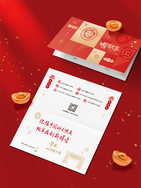今年,中国科大校领导全部三位院士:校长常进院士(844)、常务副校长潘建伟院士(874)和副校长杨金龙院士(852硕/88级基础物理中心博)都题写福字(常进校长还手写贺卡祝词)、两位院士校友:饶子和(732,南开大学原校长)和沈维孝院士(9101,复旦大学数学院院长)书写春联、“福”字、贺卡和窗花,并加入郭沫若院士(首任校长+中科院院长、著名书法家)题字。