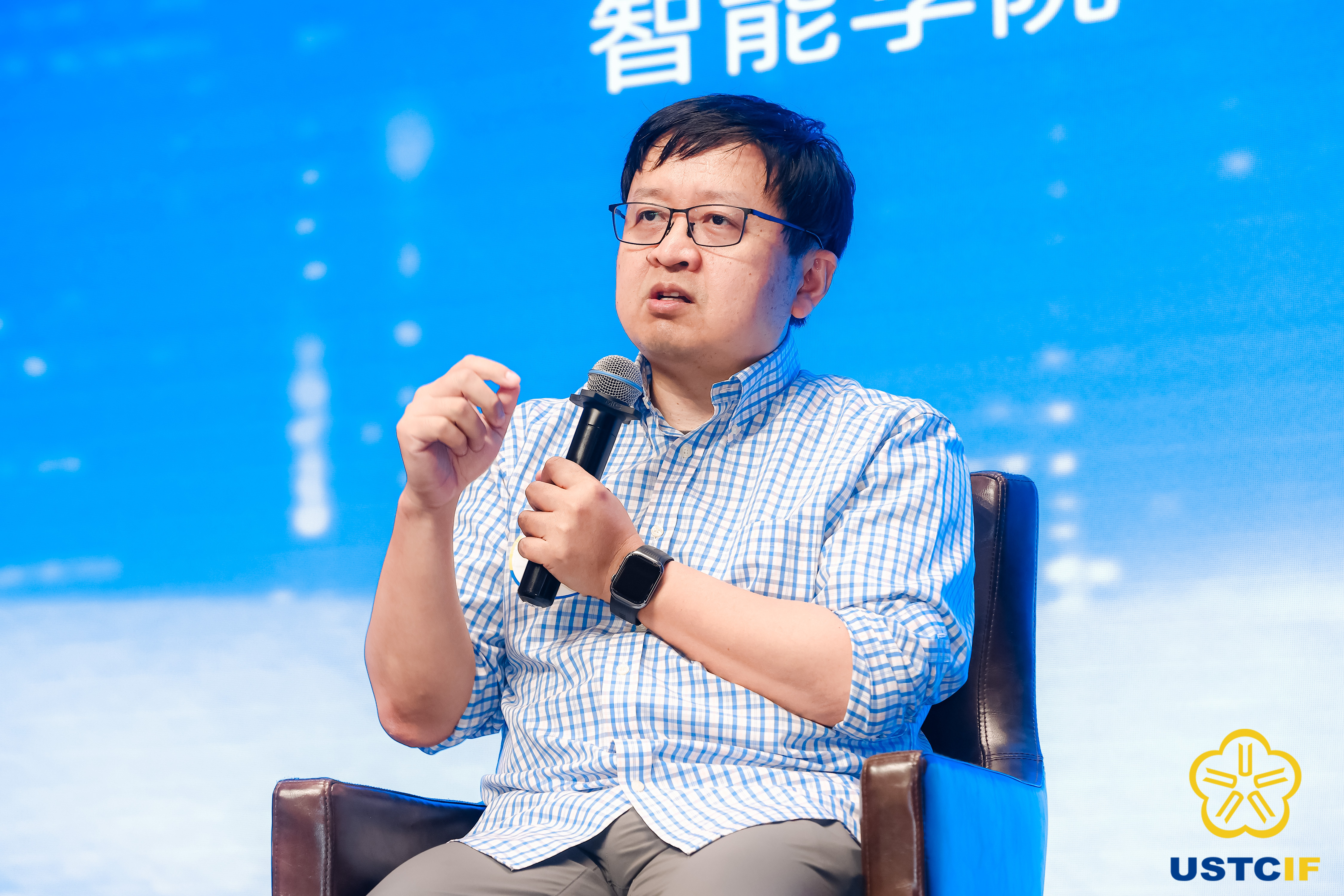 中国科大多个部门院系负责人莅临论坛,包括赵林(95少,校友总会秘书长、外联处副处长)、黄文(9401,数学学院执行院长,教授)、张勇东(信息学院执行院长、教授)、查正军、(0110,科研部部长、信息学院教授)、张世武(929,工程科学学院副院长、人形机器人研究院教授)、徐栋哲(招生就业处副处长、就业办公室主任)。