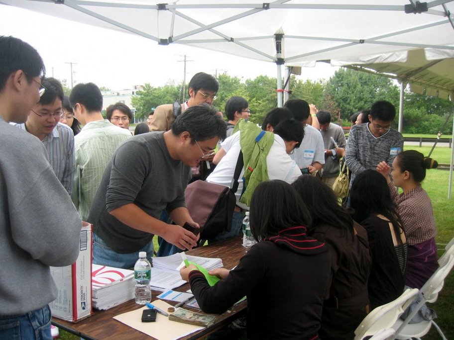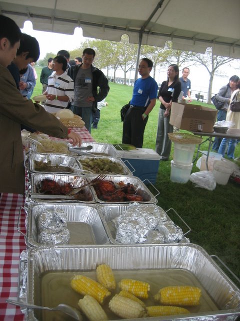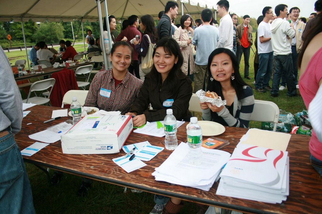 尽管天气预报称当日有暴雨,在活动的三四个小时中,除零星的雨雾之外,天公作美,保证了活动的成功进行。当天两百多位校友从纽约、新泽西、麻省、康州、宾州、特拉华、马里兰、罗德岛纷纷赶来。他们中既有78级的学长,也有一位0711的年轻同学。许多校友们还带来了亲属。校友们一边享用刚出炉的烤鸡、热狗、意大利香肠,一边畅谈在美的生活,工作,学习。最近毕业来美的校友和学长们分享母校的最新消息。