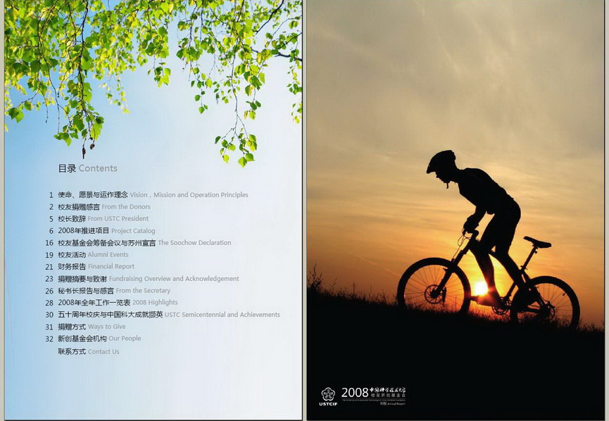与《2007年年报》相比,《2008年》内容更为翔实。在《2008推进项目》中,基金会详细向校友通报了资助中国科大的新创讲席教授、郭沫若奖学金、招生专项基金与爱心奖学金项目的具体成果。《校友基金会筹备会议与苏州宣言》则介绍了2008年国内外多个校友组织发起更大范围的全球校友基金的努力。