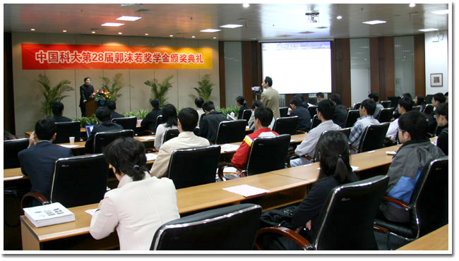2009年3月17日下午,第28届郭沫若奖学金颁奖典礼在中国科大东区活动中心报告厅隆重举行。中国科大校长侯建国为24名获奖者颁发获奖证书。多位杰出校友为获奖毕业生献上祝福。
