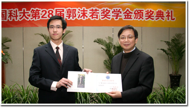 生命科学学院2005级本科生何江即将前往哈佛大学深造,他在颁奖典礼上代表获奖学生和大家分享了在大学四年里学习和生活上的切身感受。何江表示科大学生时间多半苦读过吉米多维奇。将来“我们依然会为当年这种生活,深深的求知欲而感到震撼”。何江表示“回首科大的生活,都有一份依依不舍、一份感激。除了感谢,不知道有什么言语表示对母校的感情。”他坚信,在不久的将来,本届郭沫若奖学金获得者将带着科大的优良传统,在未来的征途上一往无前。他在致辞最后感谢辛勤教导他们的老师。
