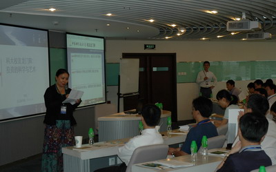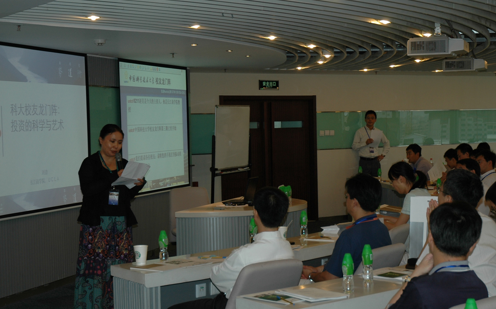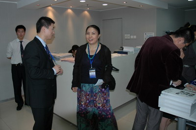 活动开始前,帅琪(9514)与张树新交谈。帅琪在芝加哥大学商学院获得MBA学位,现供职于香港汇丰银行。专程从香港赶来的帅琪龙门阵结束后即从首都机场返回香港。——每次校友龙门阵,均有数位校友专程中境外飞来。勿庸置疑,校友龙门阵已成为最国际化的中国科大校友活动品牌。
