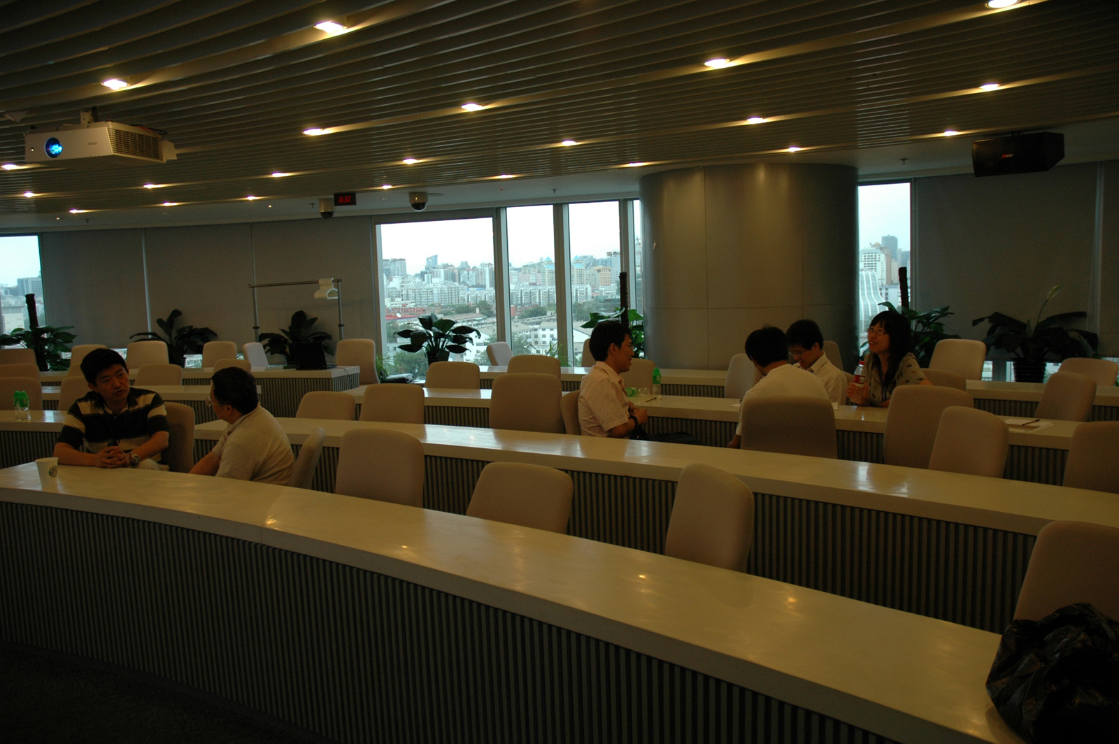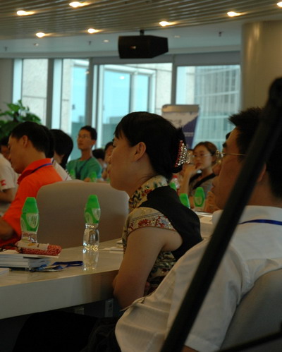 会场一角:何宜杰(9316硕士,距镜头最近,穿白衣者)与夫人在聆听演讲。镜头远处托腮女生为海归仅仅数月的中国银监会黄直(95少,哥伦比亚大学博士)。镜头远处引颈绿色体恤男生为三星研究院吴起博士(95少)。