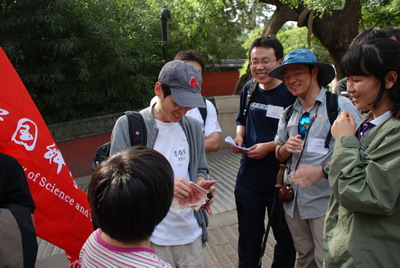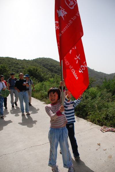 孩子们展示中国科技大学红旗。