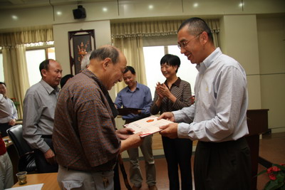 困学守望奖教金创始捐资人刘亚东向许咨宗教授颁发“育人终身成就奖”。