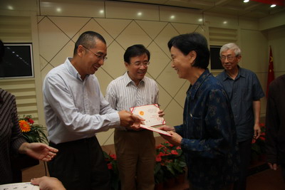 困学守望奖教金创始捐资人刘亚东向常庚哲教授颁发“育人终身成就奖”。