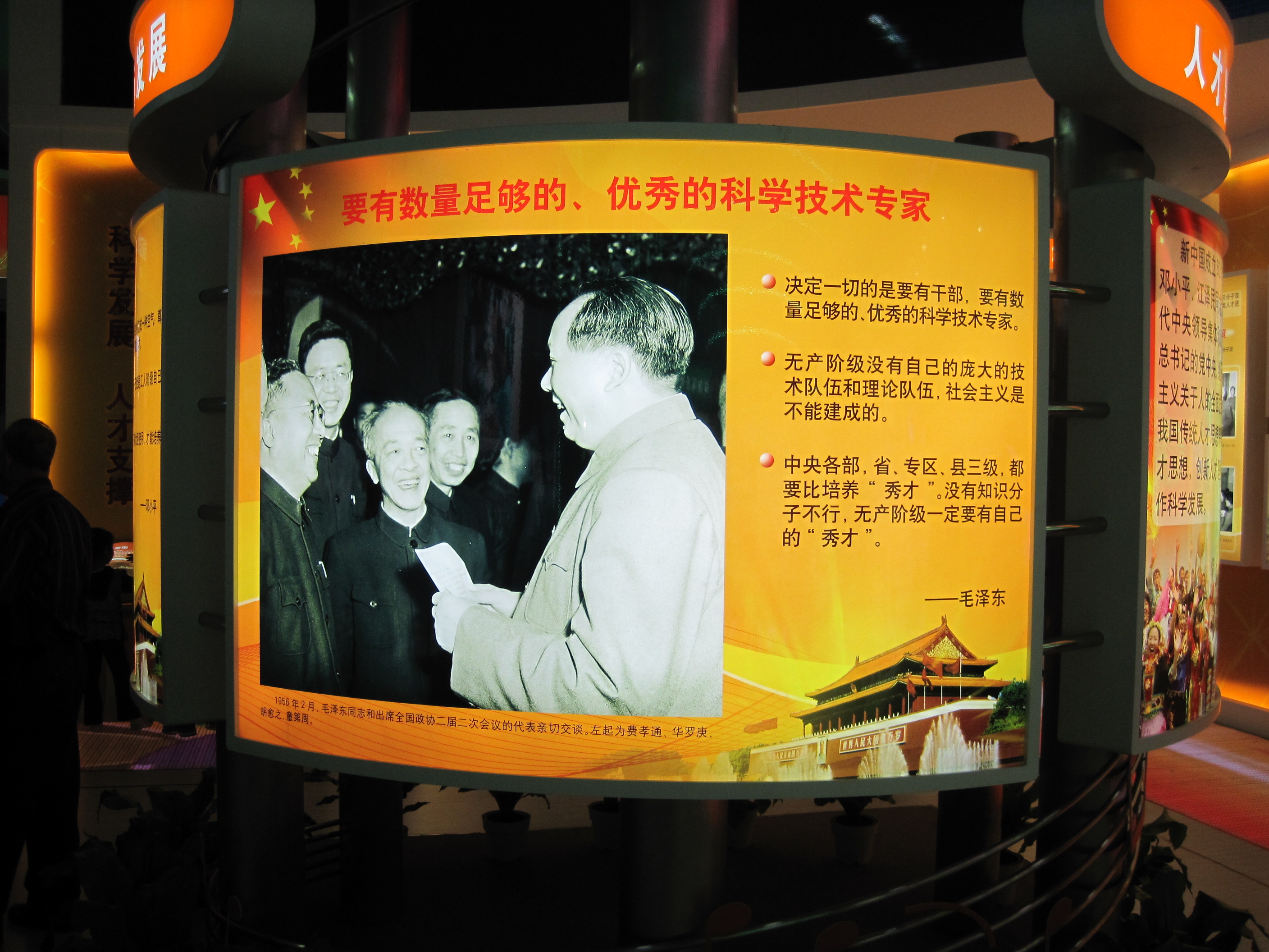 科技展区的“两弹一星”功勋科学家与国家最高科技奖获得者中多位曾任中国科大教授——钱学森为中国科大首任力学系主任;赵九章为担任应用地球物理系首任系主任和高空大气物理教研室主任;郭永怀为化学物理系系主任。