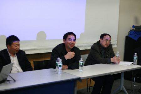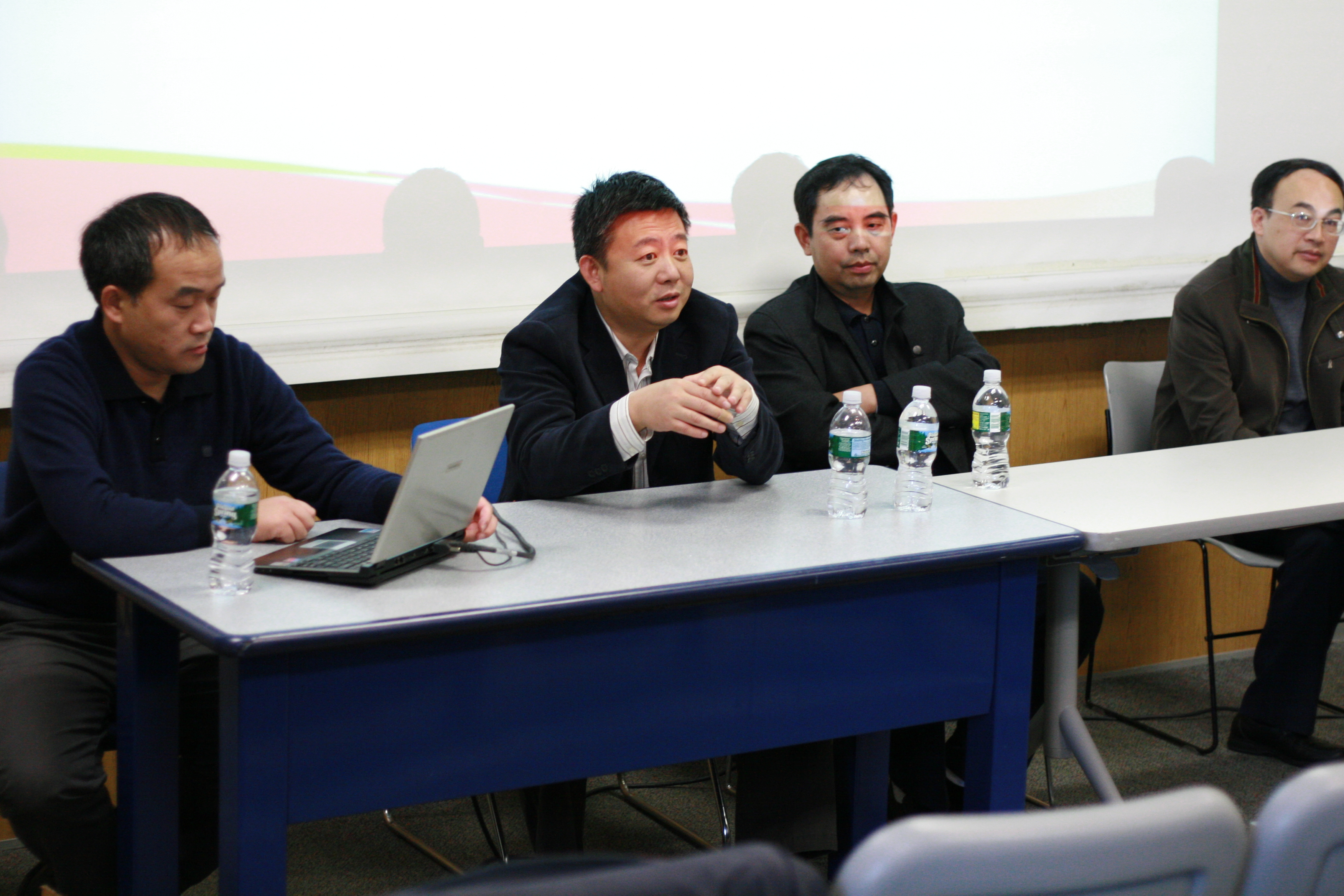 15点,中国科大首场招聘会在波士顿大学进行,窦贤康热忱邀请在场的波士顿地区学者加盟中国科大。窦贤康简短介绍了中国科大师资、教学、科研现状,强调中国科大向来注重引进一流人才,出一流成果。最近十年,在Nature、Science第一作者文章、SCI文章引用率、入选全国十大科技进展、世界物理学重大进展等成果方便多项指标均居全国第一或第二。中国科大欢迎海外学者竞聘千人计划、百人计划、长江学者等人才引进计划,也推出特任教授、特任副教授等制度等新措施。中国科大向来信守承诺,为海外人才提供良好工作、生活待遇。在场学者纷纷提问,对公用平台、年轻教员能否独立建设团队开展研究(担任PI)、交叉学科、化学口教授能否使用其他学科实验平台等众多感兴趣问题提问。窦贤康与人事师资处处长褚家如、管理学院梁墚回答了学者提问。一位显然毕业于中国科大的学者询问刘万东“请问物理学院包括2系、4系吗?那么低温、结构中心现在也属物理学院吗?” 久无发言机会的刘万东张口先致谢“谢谢你给我机会”引起哄堂大笑。