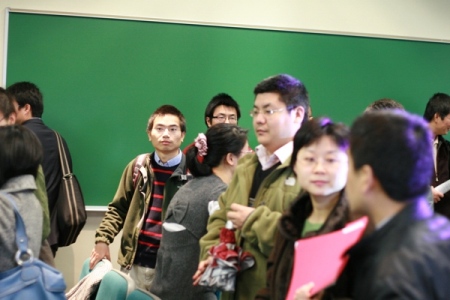 现场介绍与提问环节结束后,几十位学者与中国科大代表团个别深入交流,当场递交简历。窦贤康副校长介绍,除事先掌握的联系学者,现场学者科研实力较好,科大将尽快跟进。窦贤康向学者们介绍中国科大对海外人才引进采用每年至少四次滚动式遴选,避免海外人才等待校内流程。