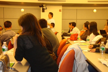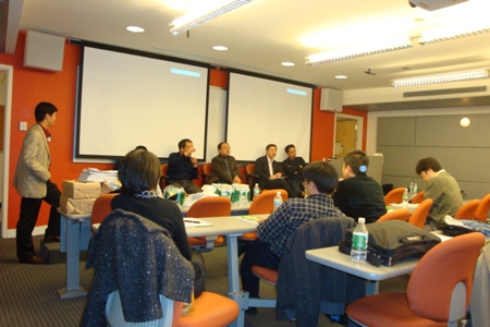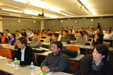 26日下午3点,代表团在哥伦比亚大学MUDD楼与当地学者见面。纽约校友会陈晓刚(9102)主持校友见面会与人才招聘说明会。科大代表团美东参访四地区,均有不少外校学者表达加盟兴趣,唯纽约地区,近70位来宾几乎全为校友。人事师资处处长褚家如教授首先向校友们介绍了母校发展态势。校友们向母校来宾纷纷提问。纽约城市大学付冰梅(805)教授建议科大加强交叉学科发展,杨斌博士(93少)则询问科大在成果申请专利方向有无重视。潘婵娟则提问引进人才待遇中科大花园的情况;寇新刚则认为基础学科当然重要,但在金融、经济等学科应尽快加强。冯鑫(9517)提问称“最近南方某高校出现海归学者坠楼自杀事件,科大对海归人才的引进是否规范,是否有正式Offer letter明确承诺?”,冯鑫表示提出该问题不是个人挑剔,而是因为这是海外学者关注的问题。尽管冯鑫在提到“南方某高校”时全场哄堂大笑,但窦贤康副校长等代表团严肃回应,中国科大向来信守承诺,他多年负责招生工作,中国科大的承诺制招生在全国中学生中备受肯定,许多优秀高中生与家长报考科大,盖因科大言出必行。2007-2008年在湖北、安徽等省招生估分出现误差时,科大宁可降低分数、宁可辗转向教育部申请也坚持兑现,绝不“忽悠”考生。而人才引进,同样信守承诺。人事师资处处长褚家如教授强调,中国科大在人才引进签约时将以书面签约(Offer Letter),在人才报道之前,职称、待遇均已落实批准,并非到校之后再谈(或申请)职称、待遇。中国科大代表团低调表示不便对兄弟院校发生的个别事件评论,但此事应属意外。