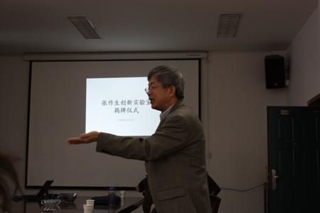 陈长汶教授介绍实验室以“张作生创新实验室”命名,不仅要纪念他在招收工作中的创新,还要纪念他开创中国科大生物医学工程学科的创新。陈长汶缅怀这位逝去的老师“是一个好人,是一个好学者”,而他对张作生的怀念是因为他给了自己和福建校友来到中国科大的机遇“在没有这么好的地方“,这里有“最好的老师,最好的环境”。陈长汶对在座师生表示“我希望大家记住,有这么一位老师,虽然已离开,但他(的精神仍)和我们在一起!”