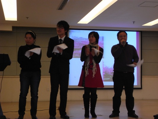 四位主持人联袂登场,左二为中国科大0608曹威。这位清纯少男引起全场熟女尖叫。