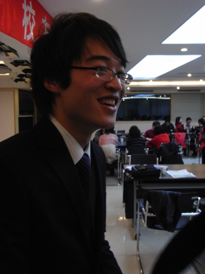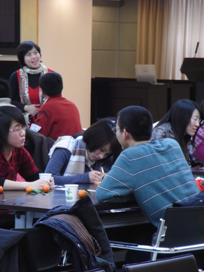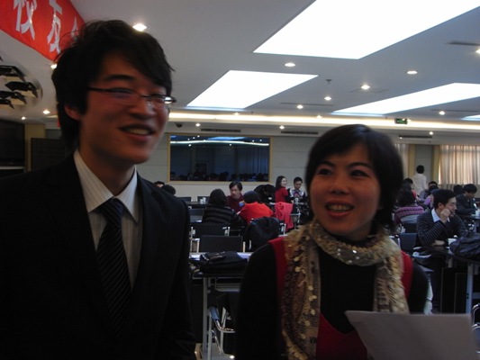 1月17日下午3:30分,100余位名校校友来到“恋爱常青藤”现场,四位主持联袂出场,中国科大北京校友会从千里之外的本部空运曹威(0608)担任男主持。这位帅气的中国科大形象大使西装革履,肉嫩皮细,大受全场熟女追捧。多位粉丝争相与之合影,姐姐们得知他即将毕业,急切地询问他的毕业去向,浙大师姐们热邀他前往酒吧工作。科大男生们遥望红到发紫的曹威,不禁遥想被四大名捕摧残致死之前也曾容颜翩翩的青春回忆。
