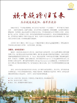 施晨阳、岳军同为82级少年班校友,他们曾于2007年4月回访中国科大,但未专程访问少年班,因此欠下一段“心债”。施晨阳等校友在此次回校中专程安排到少年班同学见面,随行来访少年班的还有施晨阳夫人、凯杰公司高级人力资源总监Paula Green女士与公关经理Brendan Green。