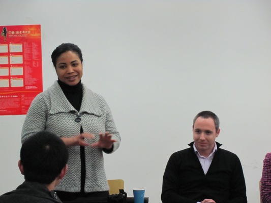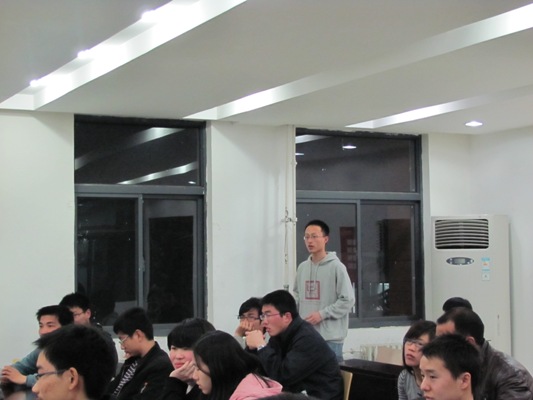 这场名为“顽童骁将归去来”的座谈会吸引了40余位同学参加,同学们首先正对两位老外提问。来自0600的何宇率先用英语提问“凯杰公司希望人才具备怎样的素质?” Paula回答介绍,人才应具备创新、忠诚(Loyalty)、守信(Commitment)等特质。 在场同学用英语询问Brendan为何选择来中国发展,Brendan则用中文回答,他出生在南非,在很多国家生活过,感受不同的文化是他的偏爱。而经济实力迅速上升的中国拥有许多机会,这是他来这里工作的原因。