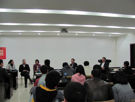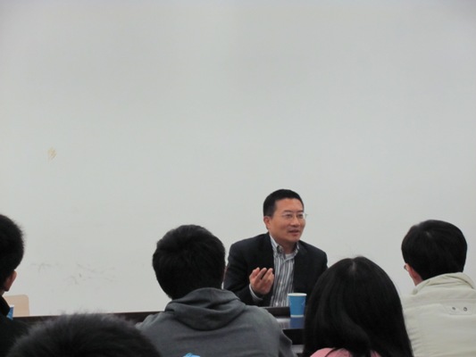 2010年3月28日晚,凯杰(QIAGEN)生物技术有限公司亚太区总裁施晨阳、营销顾问岳军来到少年班学院同学们见面。
