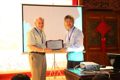VCIP创始人William A. Pearlman教授接受中国科大大师讲席教授陈长汶颁发的VCIP成就奖。