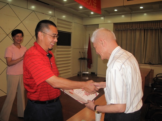 刘亚东将奖状送到育人终身成就奖教授们的座位前。