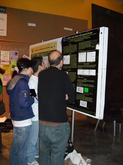 中国科大iGEM代表队员们在iGEM现场——这张照片被美工设计师选中成为中国科大校友简报国庆特刊封面。最后发布的版本,两位男生惨遭PS——美工设计师或许因画面简洁考虑,或许因右一男正在脱衣不雅痛下杀手。