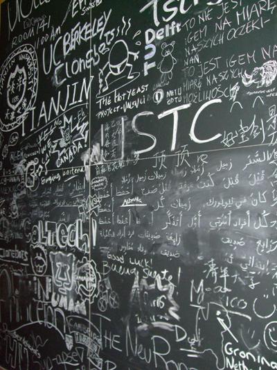 涂鸦似乎是iGEM的传统——科大队员未能免俗,黑板上USTC字样清晰可见。