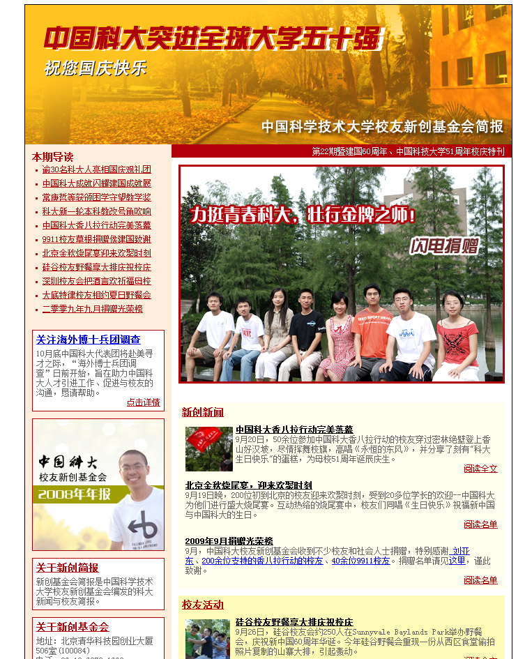 中国科大校友简报2010年国庆特刊封面,点击上图可浏览。