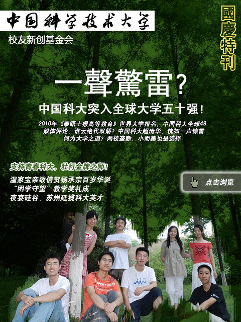 中国科大校友简报2010年国庆特刊,点击上图可浏览。