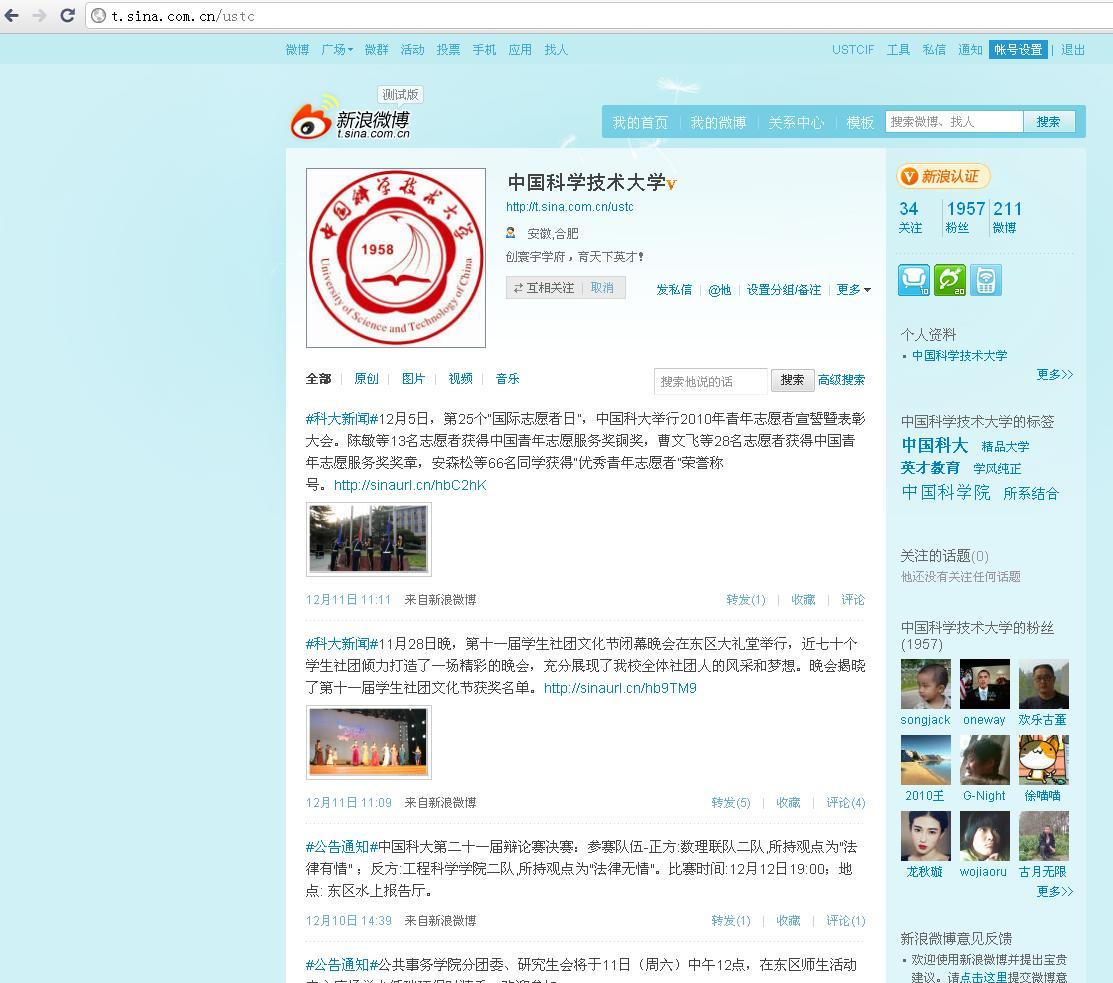 以上为中国科大新浪微博:点击上图可进入科大微博并关注。