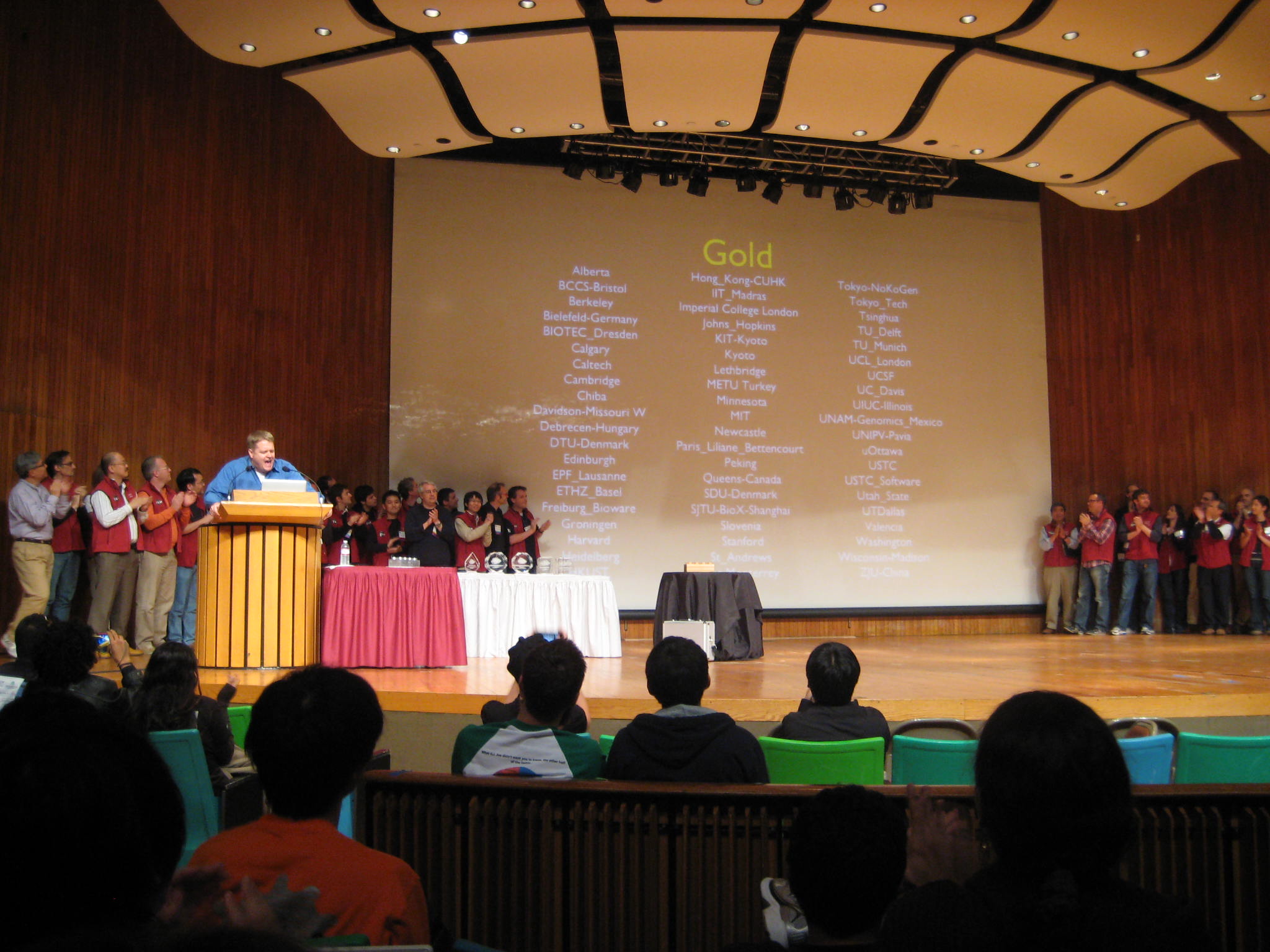 2010年11月9日(北京时间),新创基金会资助的中国科大两支代表队在iGEM中夺得两枚金牌与Best Software Tool最佳单项奖。中国科大是全球唯一获得两枚金牌的高校,中国科大与北京大学也是大中华区成绩最出色的两支代表队之一,而中国科大继续保持中国高校金牌榜总数第一的位置。以下是一组中国科大代表队发来的照片,记录着科大iGEM代表队夺金之路的历程。由于负责摄影的主要队员相机存储卡损坏,大部分照片无法提供;加之比赛过程,队员繁忙;而颁奖过程中,中国科大队员在场内所处位置不佳,以下部分照片效果一般,请谅解。庆幸的是,我们只需为照片效果而非比赛结果感到遗憾。