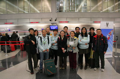 列队出发——中国科大代表队在芝加哥机场合影留念,准备飞赴波士顿。