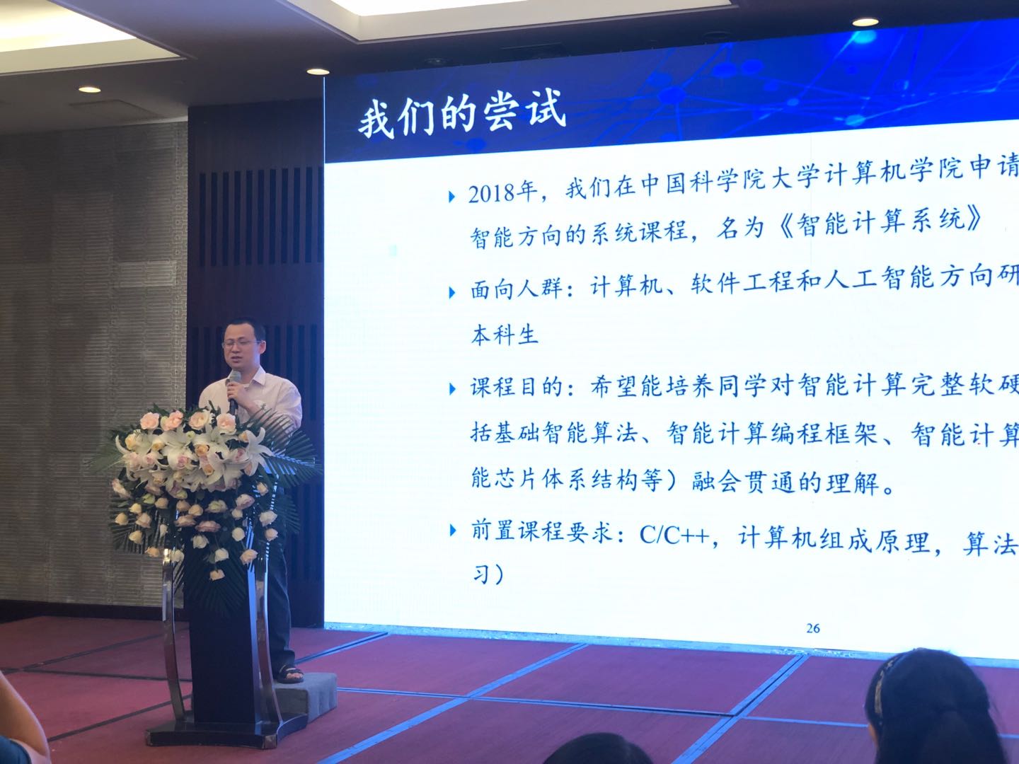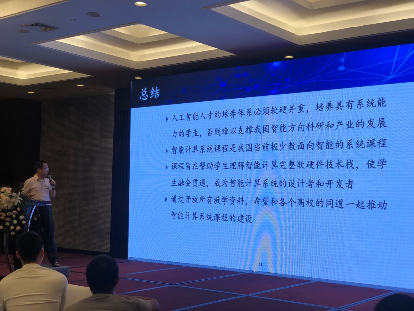 深度学习处理器的“先驱”和“引领者”——陈云霁博士。陈云霁的报告是《智能系统教育课程》。陈云霁是97级少年班校友。中科院计算所所务委员、研究员、博导,全国青联常委。他曾获国家杰出青年科学基金、中国青年五四奖章、中国青年科技奖、全国创新争先奖状,被MIT技术评论评为全球35位杰出青年创新者(2015年度)。